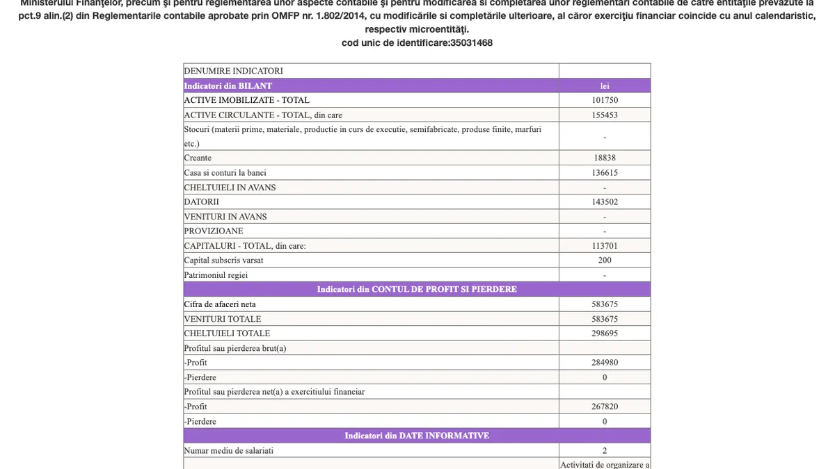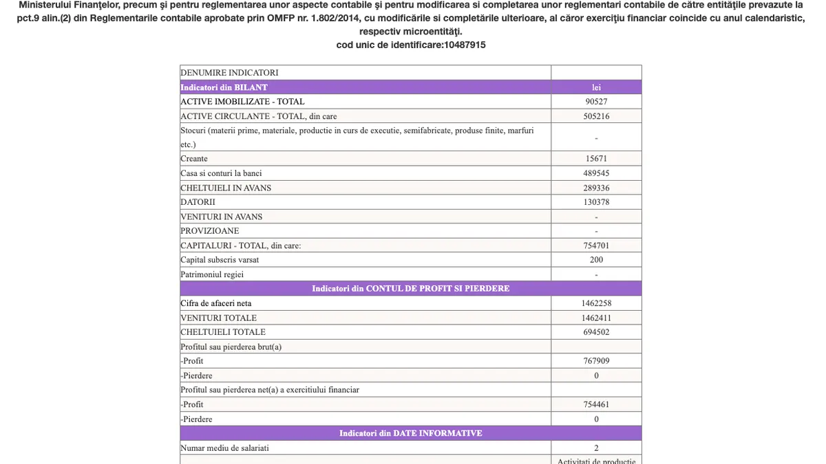 În anul fiscal 2022, aceasta a avut venituri de peste 583.000 de lei și un profit de peste 267.000 de lei. Atelierul de Vise SRL are tot doi angajați.