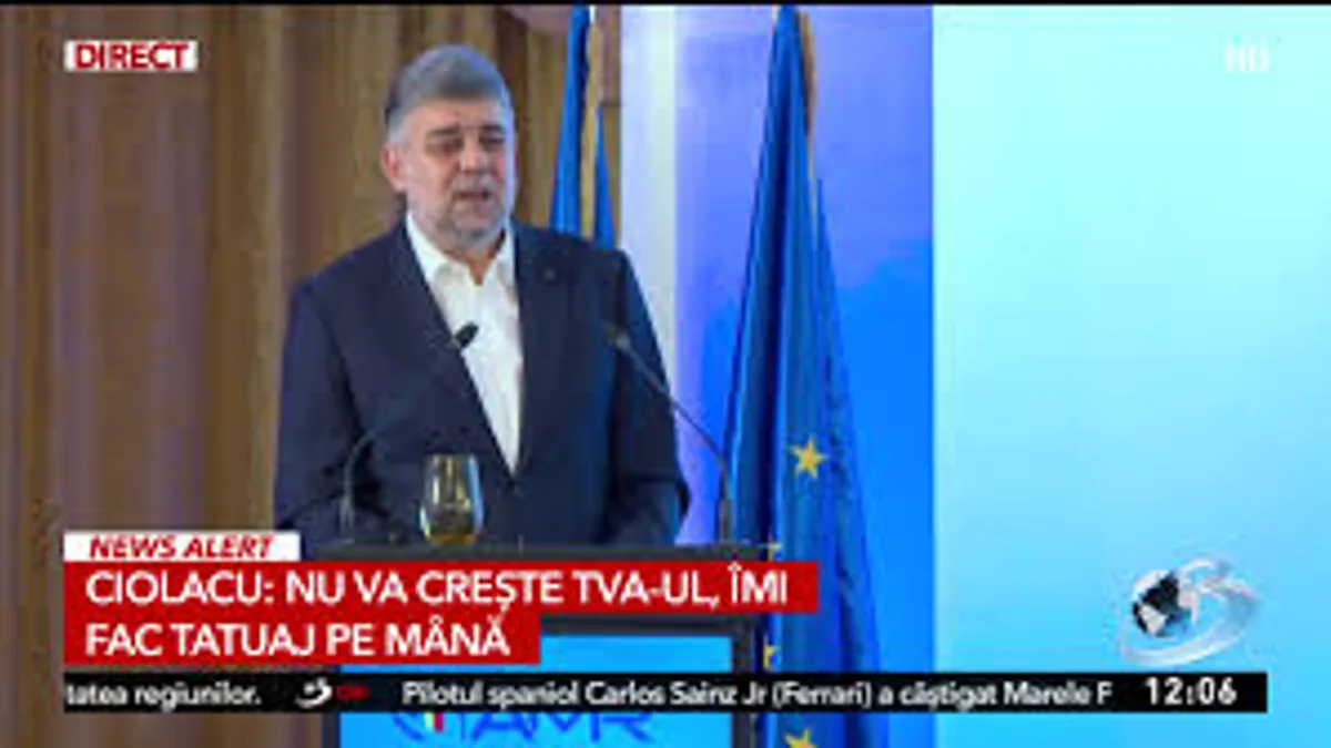 „Nu se măreşte TVA-ul. Vă spun, mă tatuez pe mână, nu se măreşte TVA-ul. Nu va creşte nicio cotă unică. Va rămâne 10% pe venit”, spunea Marcel Ciolacu, la finalul lunii octombrie.