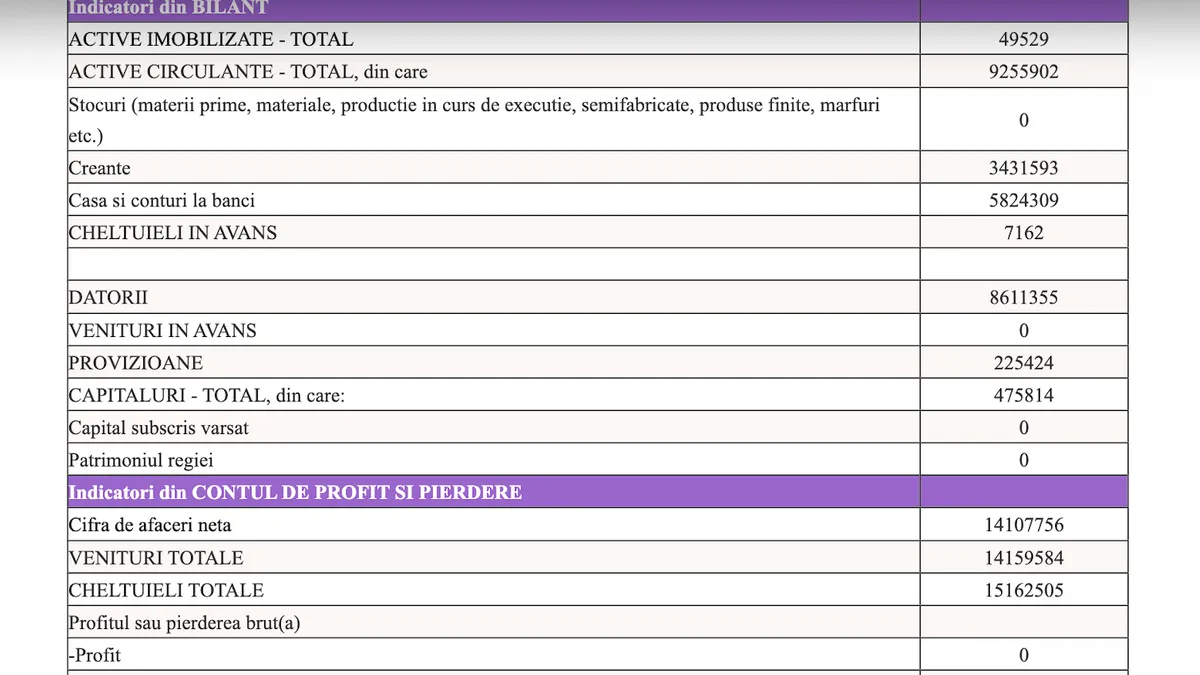 Mai mult, datoriile firmei la finalul lui 2023 erau de peste 8,6 milioane de lei.