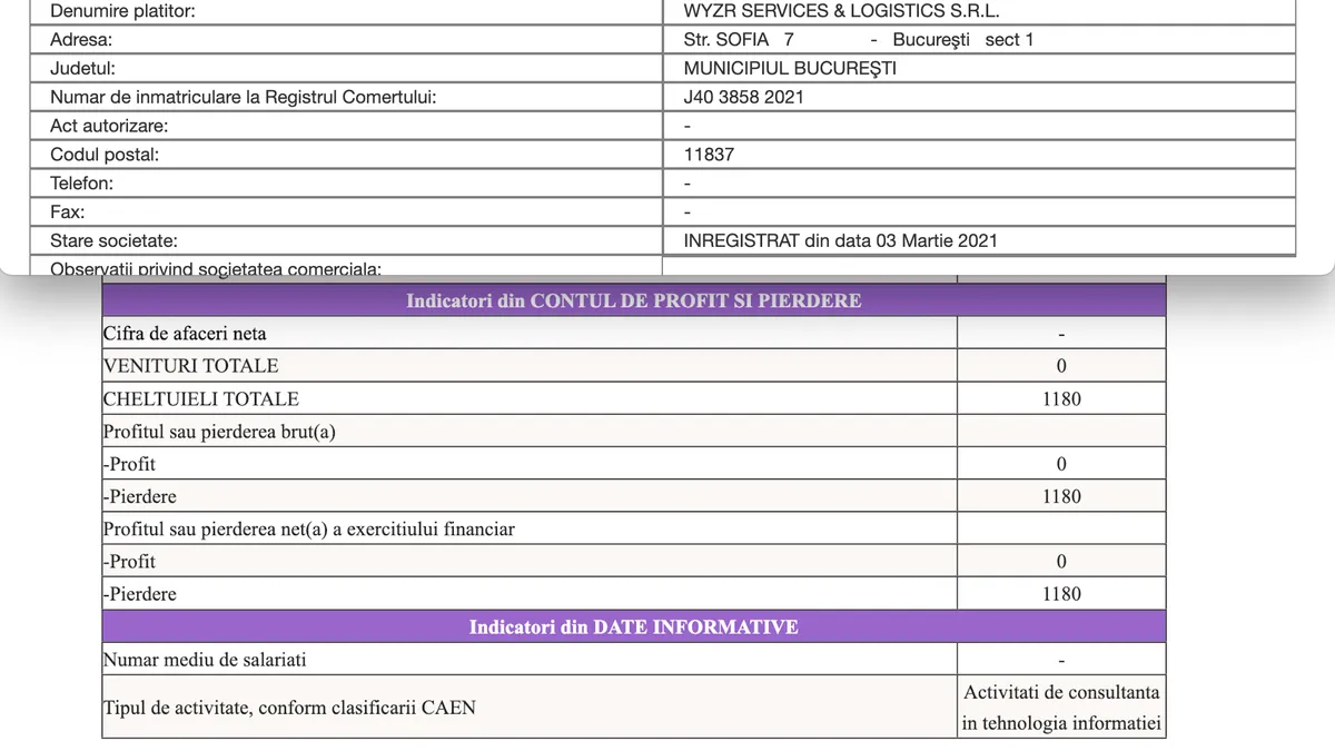 O altă firmă pe care se pare că o deține Andrei Caramitru este WYZR Services & Logistics SRL.