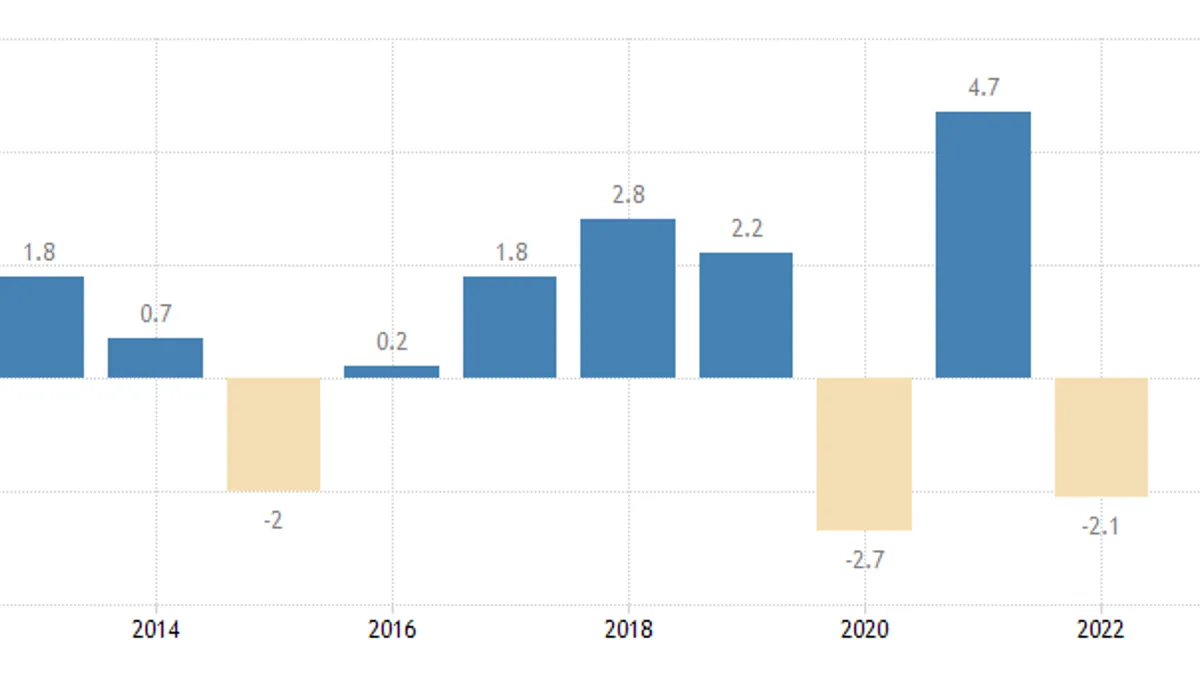 New data: According to Rosstat's initial estimate, #Russia's GDP fell by 2.1% in 2022.https://t.co/H7MM0h4Ymk pic.twitter.com/1Agc5AUnGr