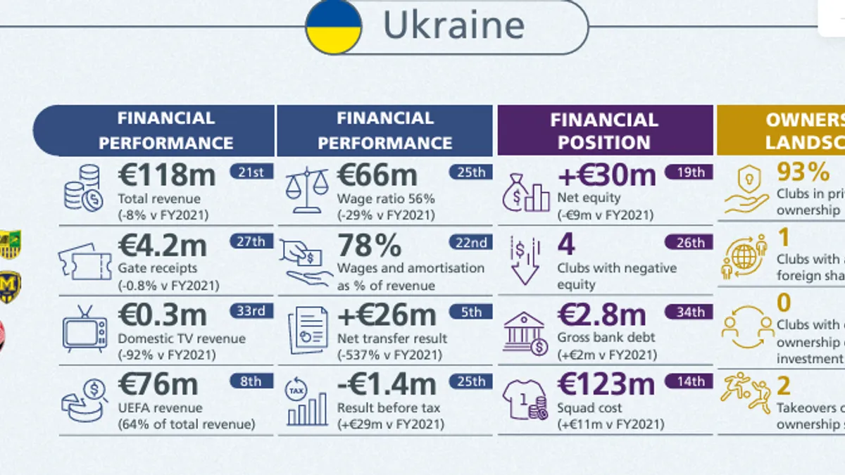 În Ucraina, 93% din echipe sunt proprietate privată, iar una din echipe are acționar străin.