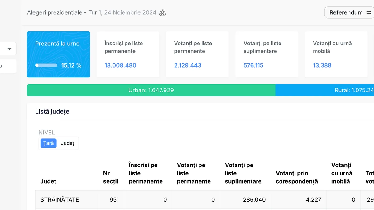 AEP crește artificial diferența urban - rural: Autoritatea Electorală Permanentă central contabilizează voturile din diaspora la prezența urbană din țară.