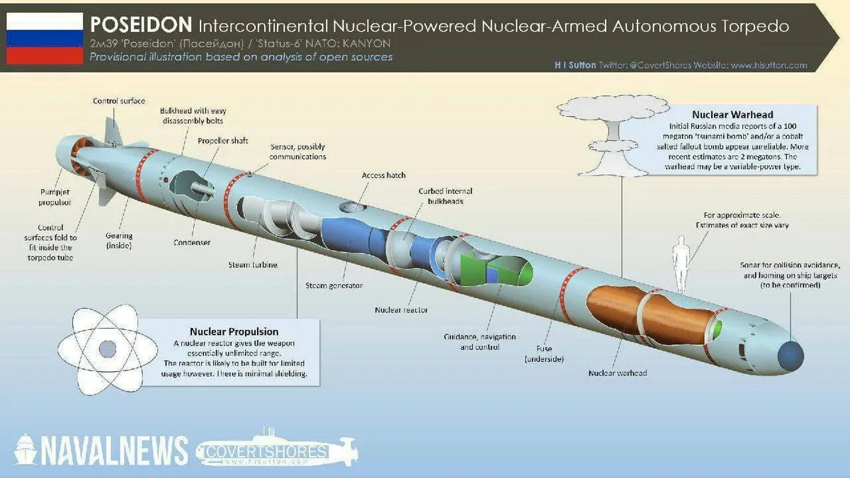 Descrisă şi ca ''arma apocalipsei'', torpila Poseidon este o armă de nouă generaţie ce poate transporta muniţii atât convenţionale, cât şi nucleare. Echipată cu o ogivă nucleară, ea poate provoca un tsunami radioactiv în zonele de coastă. Propulsia sa nucleară îi oferă o rază de acţiune practic nelimitată. Însă potrivit Rusiei, dar şi unor experţi occidentali, această armă nu va intra în dotarea armatei ruse mai devreme de anul 2027.