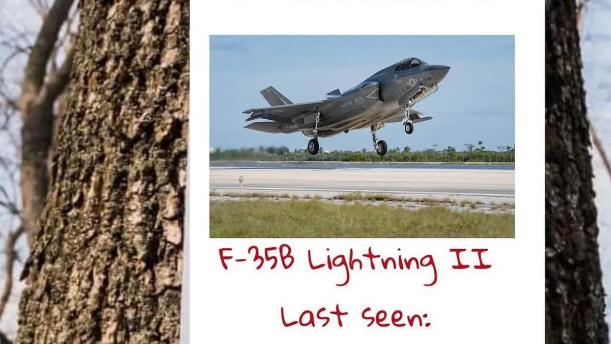 „A văzut cineva un F-35? Acesta măsoară puțin sub 16 metri. A dispărut de aproximativ o oră. Numele: Tommy. Nu mușcă.