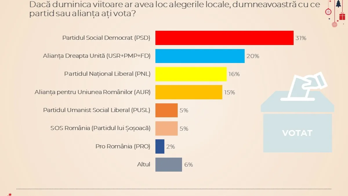 În ceea ce privește intenția de vot pentru partide, ea arată astfel: