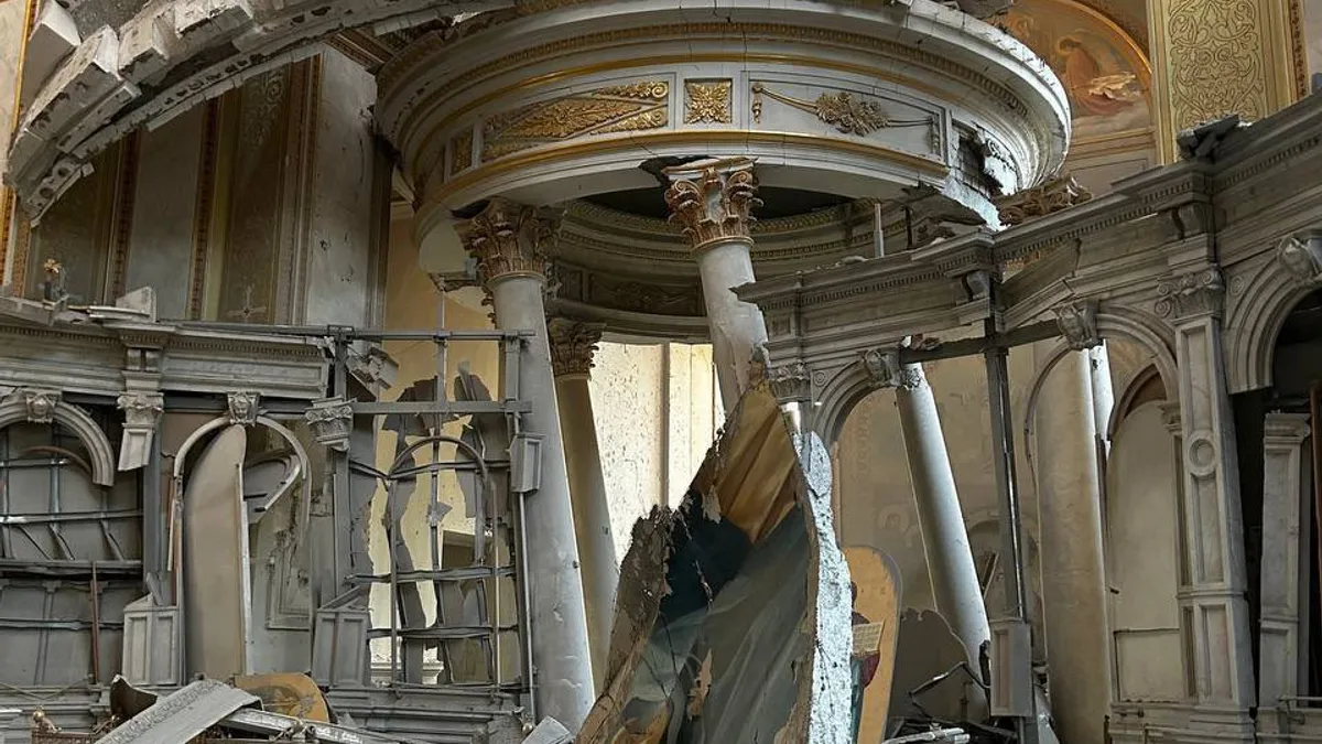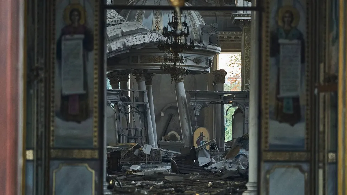 Arhidiaconul catedralei din centrul istoric al oraşului Odesa, Andrii Palciuk, a deplâns distrugerea "enormă" a bisericii - despre care a spus că a fost cauzată de o lovitură directă a unei rachete ruseşti, informează The Guardian.