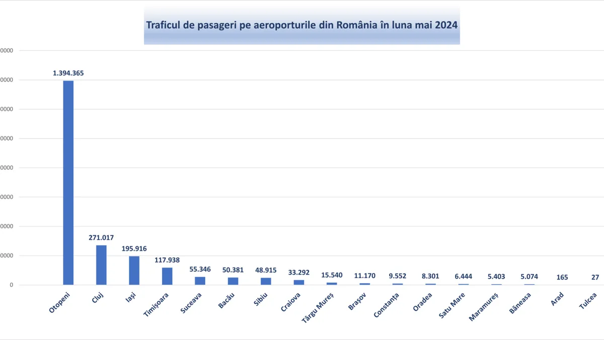 Dar datele Asociației Aeroporturilor din România arată că, în luna mai, doar 27 de pasageri au aterizat pe acest nou aeroport, care are o capacitate de procesare de 400 de pasageri pe oră. Dintre cei 27 de pasageri de pe aeroport, trei au sosit pe curse externe, deși, după noua investiție, sunt două terminale, Schengen și non-Schengen.