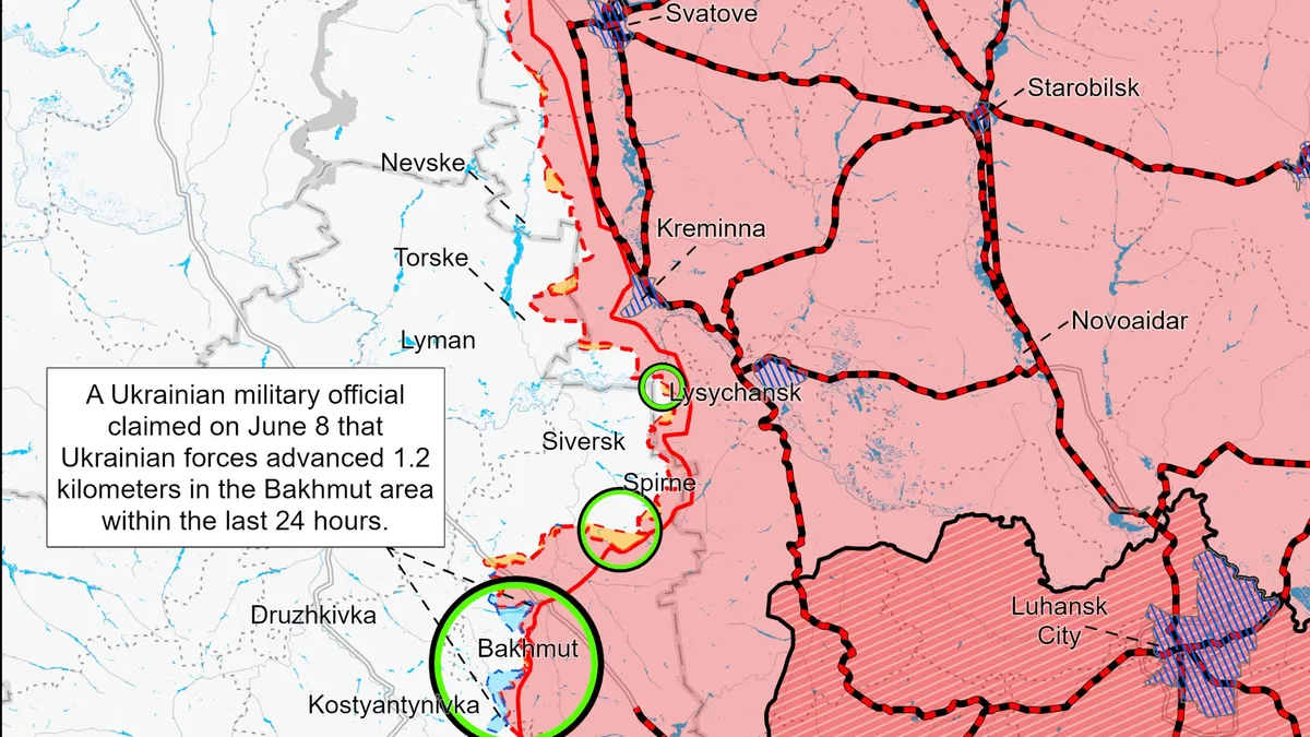 Institutul de Studii a Războiului, ISW, arată că sunt mai multe direcții de atac, Ucraina avansând în zona Bahmut și vestul Donețkului.