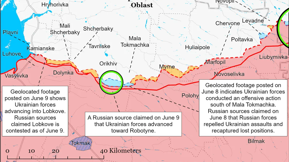 „Ucraina a avansat 5-17 km în regiunea Zaporizhya, a străpuns prima linie de apărare a Rusiei și a eliberat peste o duzină de comunități, potrivit site-ului Volya, care citează contacte ucrainene și rusești.