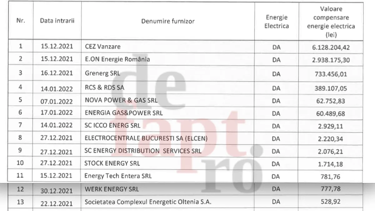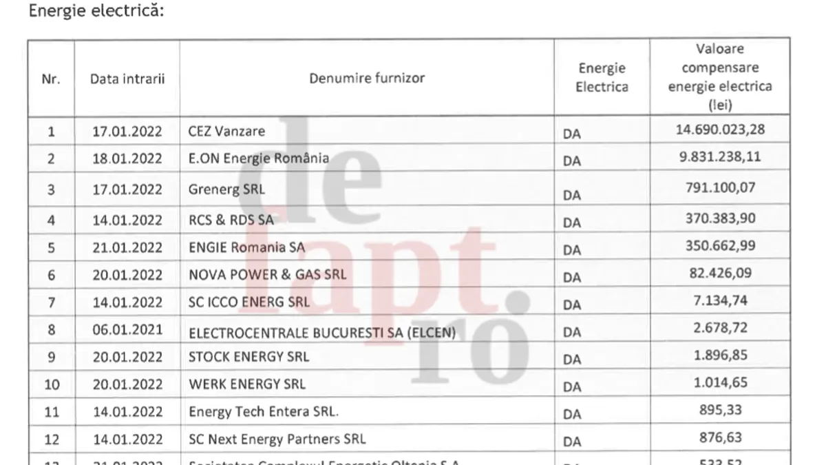 - energie electrică în noiembrie 2021: 10,3 milioane de lei