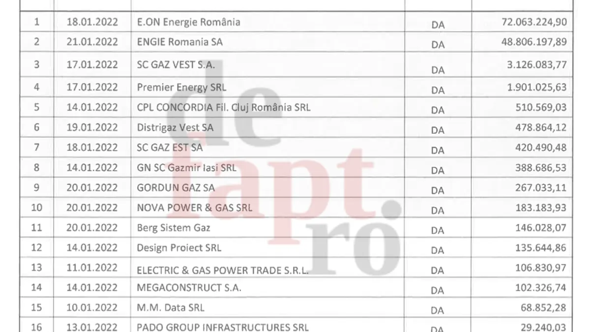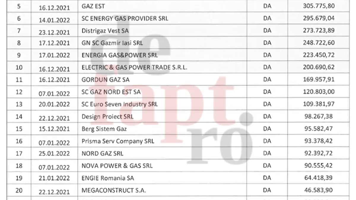 Clienții casnici de gaze naturale sunt aproximativ patru milioane în România. În medie, fiecare a beneficiat de o compensare de cinci lei în noiembrie și de 32 de lei în decembrie.