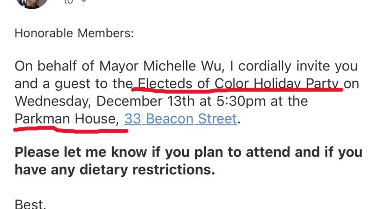 Este doar una dintre multele petreceri care vor fi organizate pentru aleșii din Boston în acest sezon de sărbători, a declarat Wu, dar aceasta a fost destinată doar celor șase membri ai consiliului aparținând minorităților”, relatează NBC News.