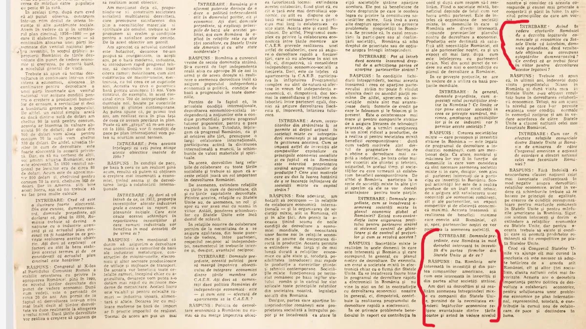 În interviul pentru Business Week, Nicolae Ceaușescu este întrebat: „Domnule președinte, este România interesată în mod deosebit de investiții din partea firmelor din SUA și de ce?”. Secretarul general al PCR a răspuns fără ezitare: „Da. România este interesată în investiții și din partea companiilor americane, așa cum este interesată în investiții și din partea altor societăți străine”.