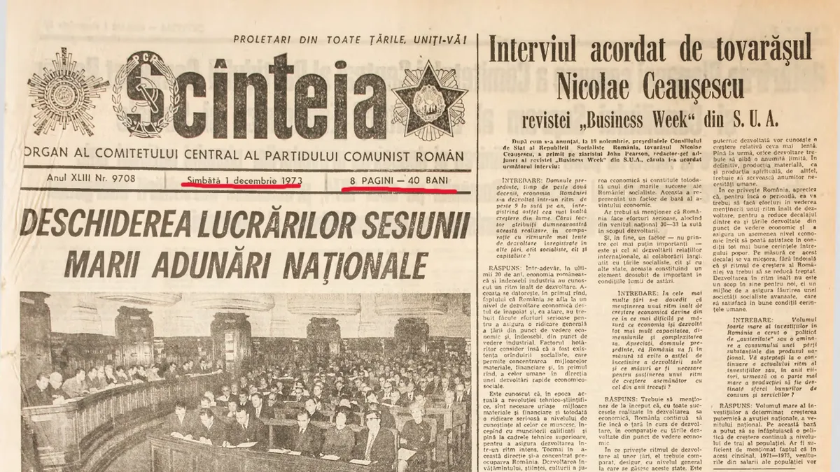Cum a marcat regimul Ceaușescu ziua de 1 Decembrie 1973, acum 50 de ani: Unirea cu Transilvania - care nu era definită drept „Marea Unire”, cum s-a petrecut ulterior - era consemnată pe pagina șase din Scânteia, oficiosul Partidului Comunist ROMÂn (PCR).