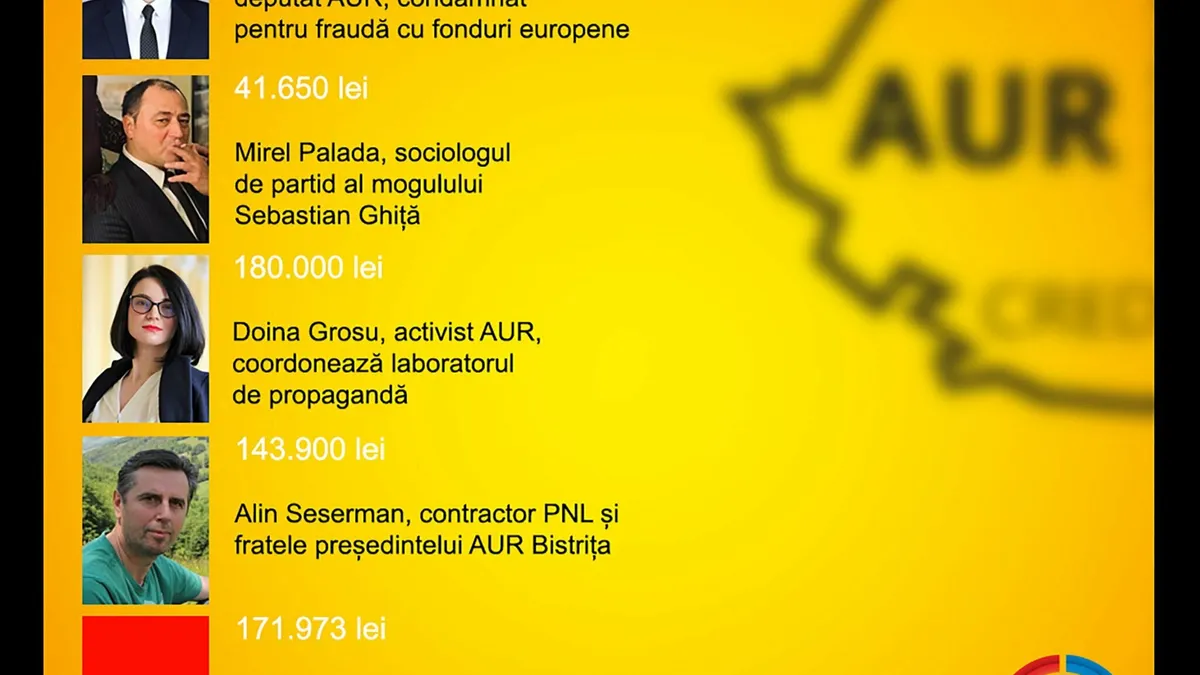 În articol se arată că banii cheltuiți de AUR în campania electorală - și care apoi au fost decontați de Autoritatea Electorală Permanentă, din bugetul de stat - s-au dus la firme ale unor apropiați ai partidului.