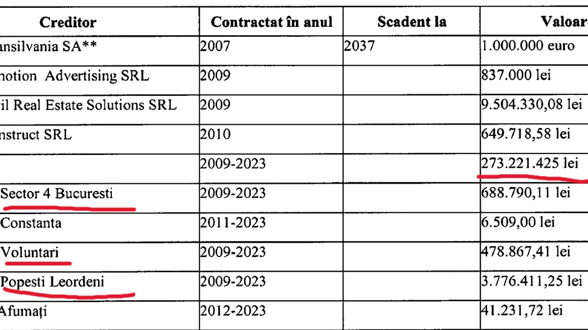 Și datoria către primăria Voluntari, condusă de pesedistul Florentin Pandele, a ajuns la circa 478.000 de lei, de la 462.000 de lei. Ea era de doar 168.019 lei în 2011.