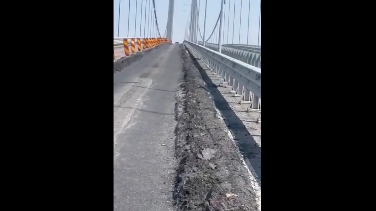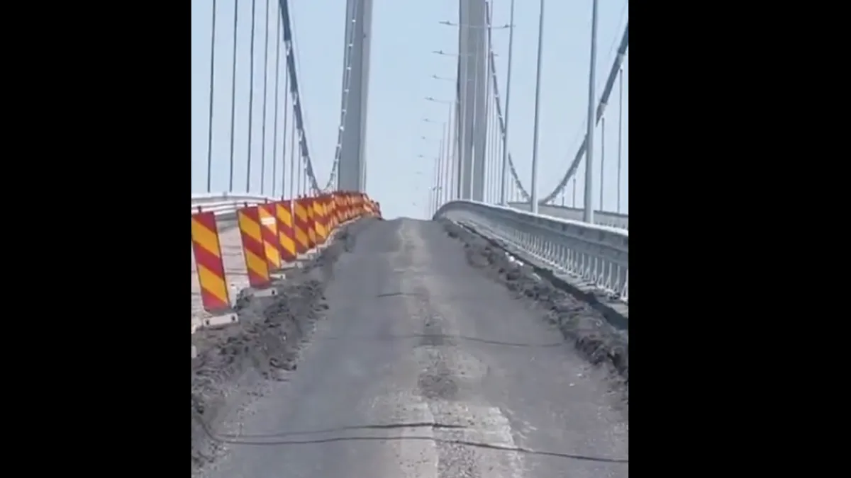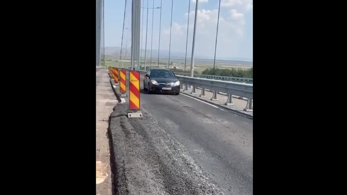 "Covorul asfaltic de pe Podul Brăilei, cel care traveresează Dunărea până la Tulcea, a cedat din nou!