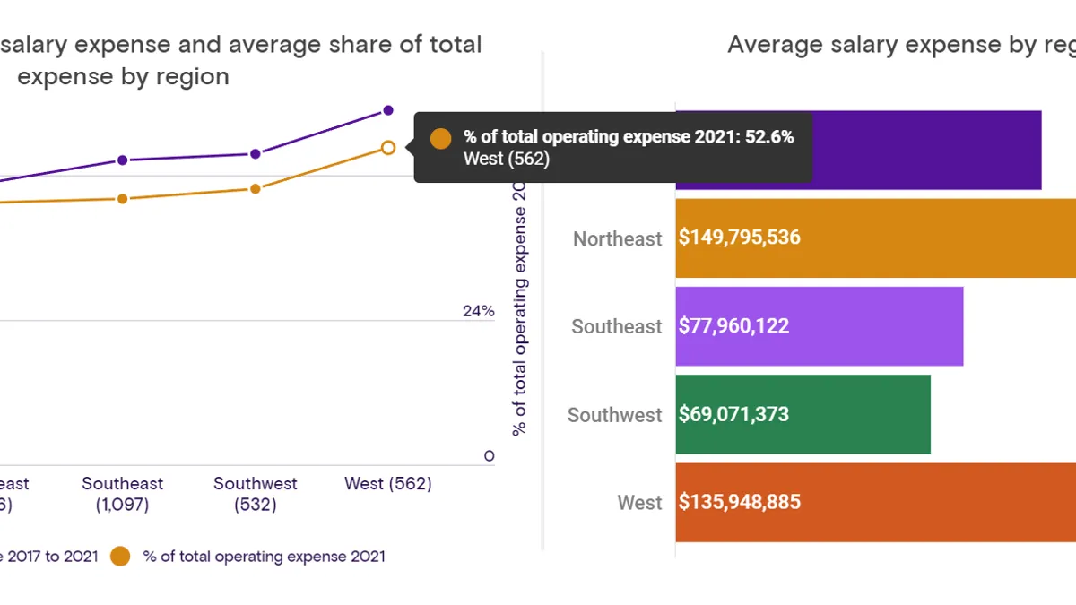 Datele din SUA, din anul 2021, arată că spitalele alocă, în medie, între 48% și 52% din buget pentru salariile personalului.