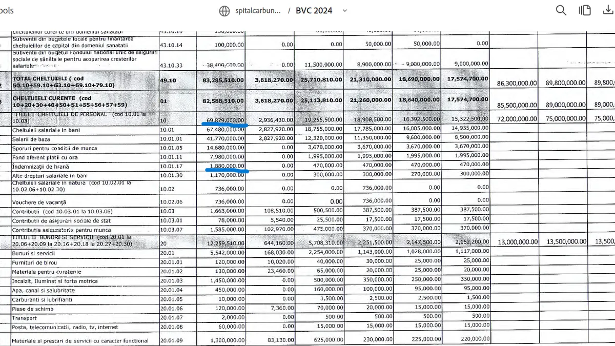 Cum arată cheltuielile spitalului din Târgu Cărbunești: