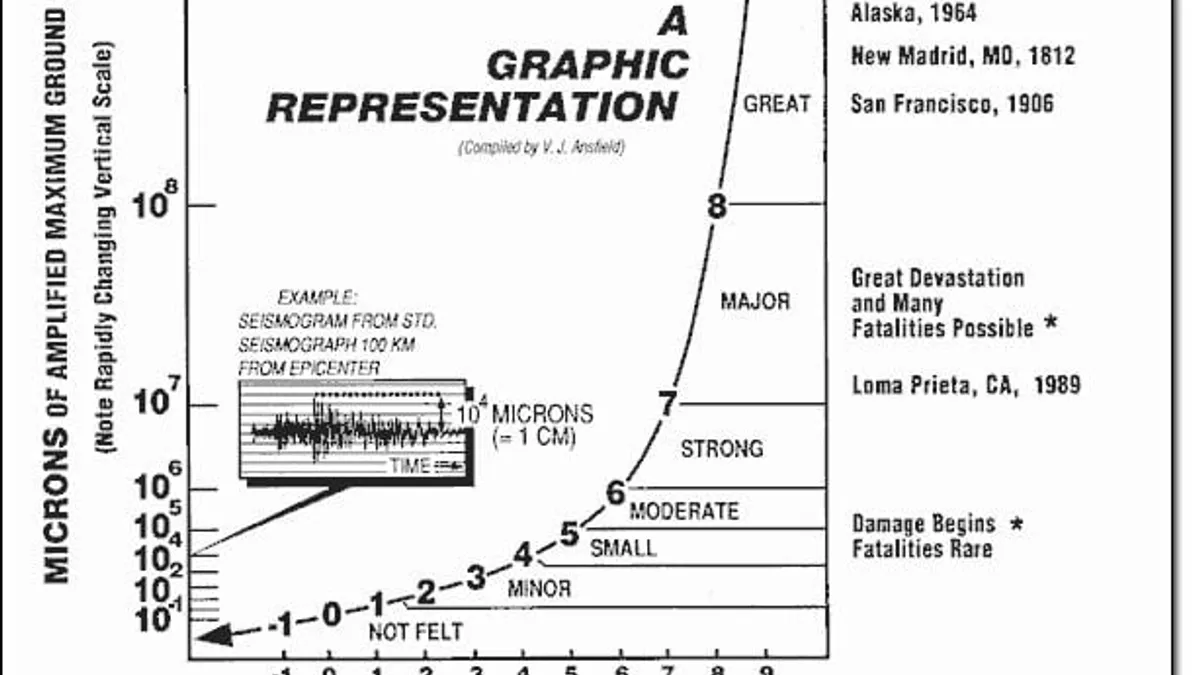 „Scara Richter este o scală logaritmică în baza 10, ceea ce înseamnă că fiecare ordin de mărime este de 10 ori mai intens decât cel precedent. Cu alte cuvinte, un doi este de 10 ori mai intens decât un unu, iar un trei este de 100 de ori mai mare.