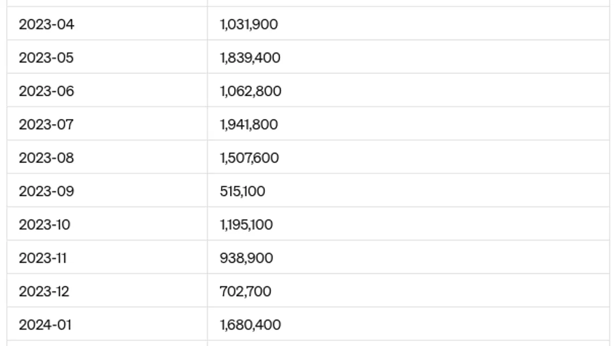 Spre comparație, cu o lună înainte, ianuarie 2024, se tranzacționaseră numai 1,6 milioane de acțiuni, cam de cinci ori mai puțin.