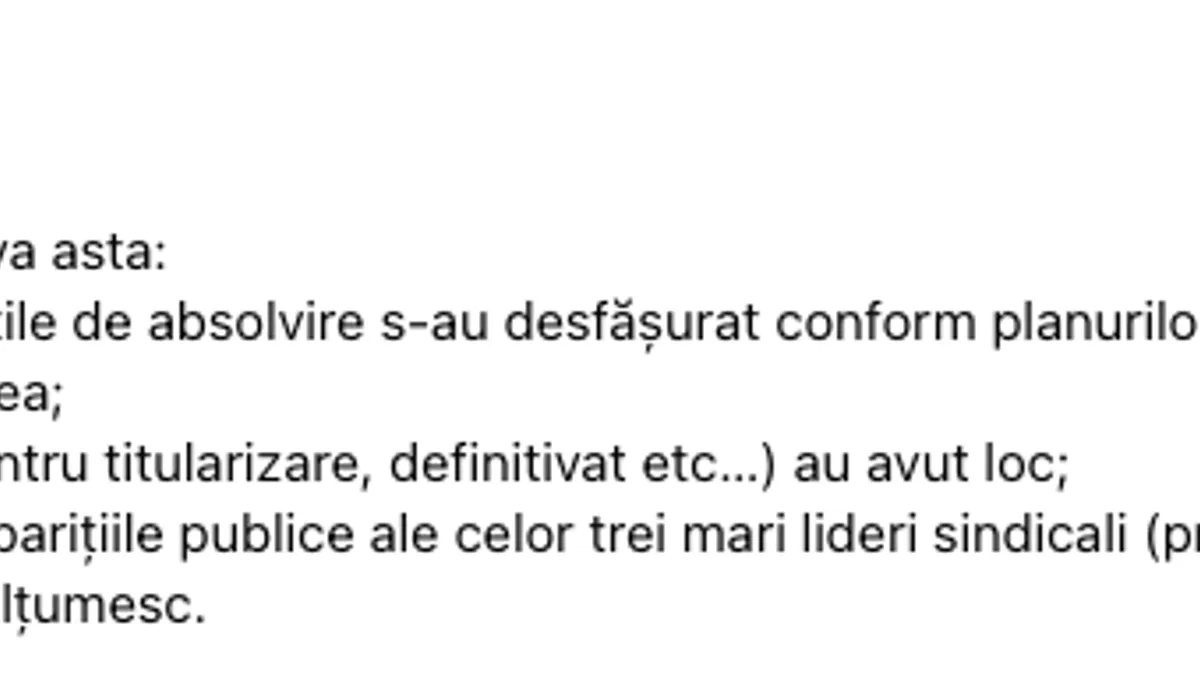 Informația a fost făcută publică tot de profesori. Ioana Turcu, profesoară de muzică, a postat pe Facebook un text potrivit căruia activitățile de final de an s-au desfășurat cum era planificat.