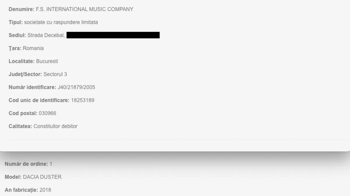 EXCLUSIV Florin Salam a dat țeapă și cu o Dacia Duster: a luat două în leasing, pe firmă, a plătit doar una. Firma nu a mai depus bilanțuri din 2021, când avea datorii de sute de mii de lei