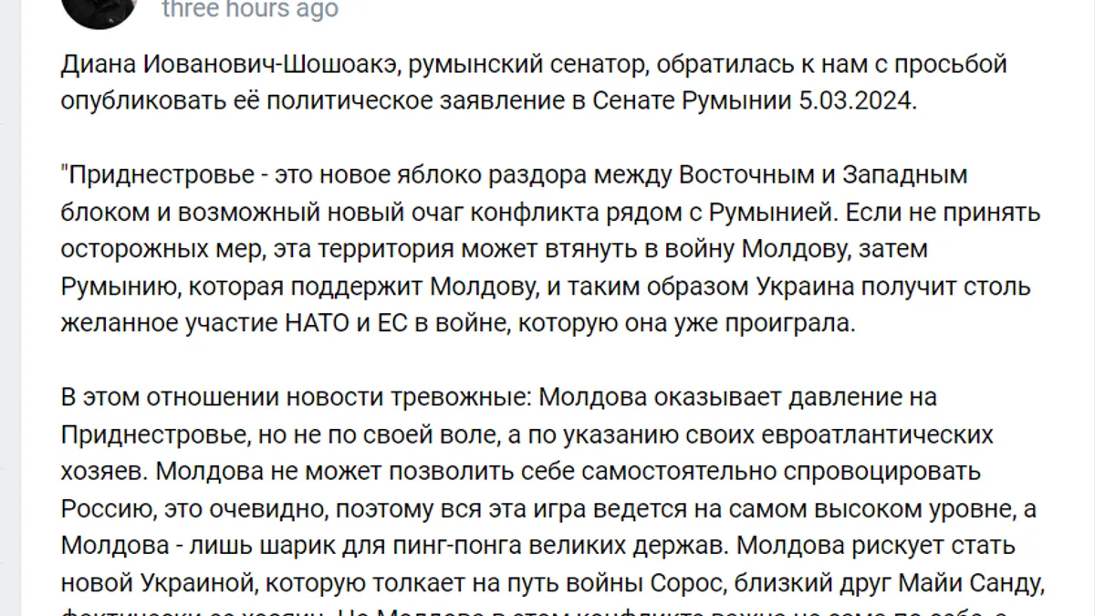 „Diana Iovanovic-Shoshoaca, senator român, ne-a cerut să-i publicăm declarația în Senatul României la 05.03.2024”, a scris Rogozin pe canalul VK, înainte să îi publice mesajul lui Șoșoacă.