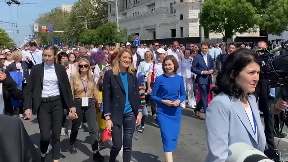 La miting a vorbit și președinta Parlamentului European, Roberta Metsola, care a adresat un mesaj în română: „Europa este Republica Moldova. Republica Moldova este Europa. Moldova nu este singură".