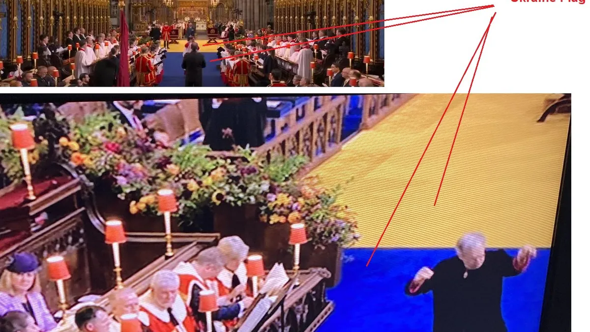 That’ll be including the giant Ukrainian Flag in the middle of Westminster Abbey.