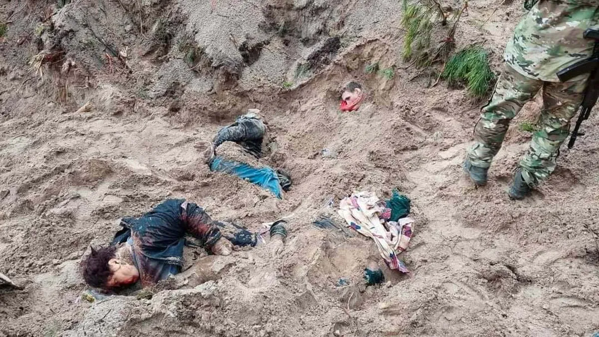 Illia Ponomarenko, jurnalist la Kyiv Independent, a distribuit o imagine care ar confirma că oamenii au fost executați cu mâinile la spate.