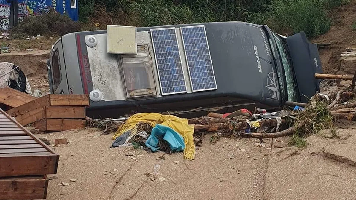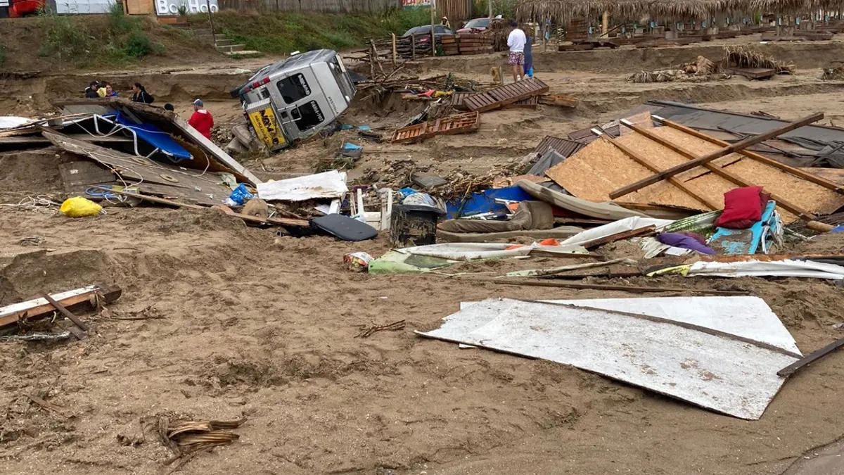 GALERIE FOTO Sudul litoralului arată ca după tsunami: furtuna de vineri spre sâmbătă a produs distrugeri masive - plaje devastate, inundații, clădiri prăbușite, mașini luate de ape