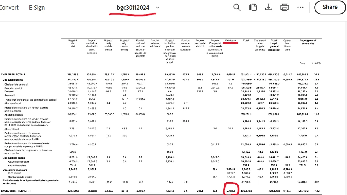 Guvernul Ciolacu pare să fi devalizat Eximbank: ministerul de Finanțe anunță un deficit de puțin sub 2,5 miliarde de lei la final de noiembrie. Potrivit execuției bugetare pentru primele 11 luni din 2024, Eximbank are deficit de 2,481 miliarde de lei.