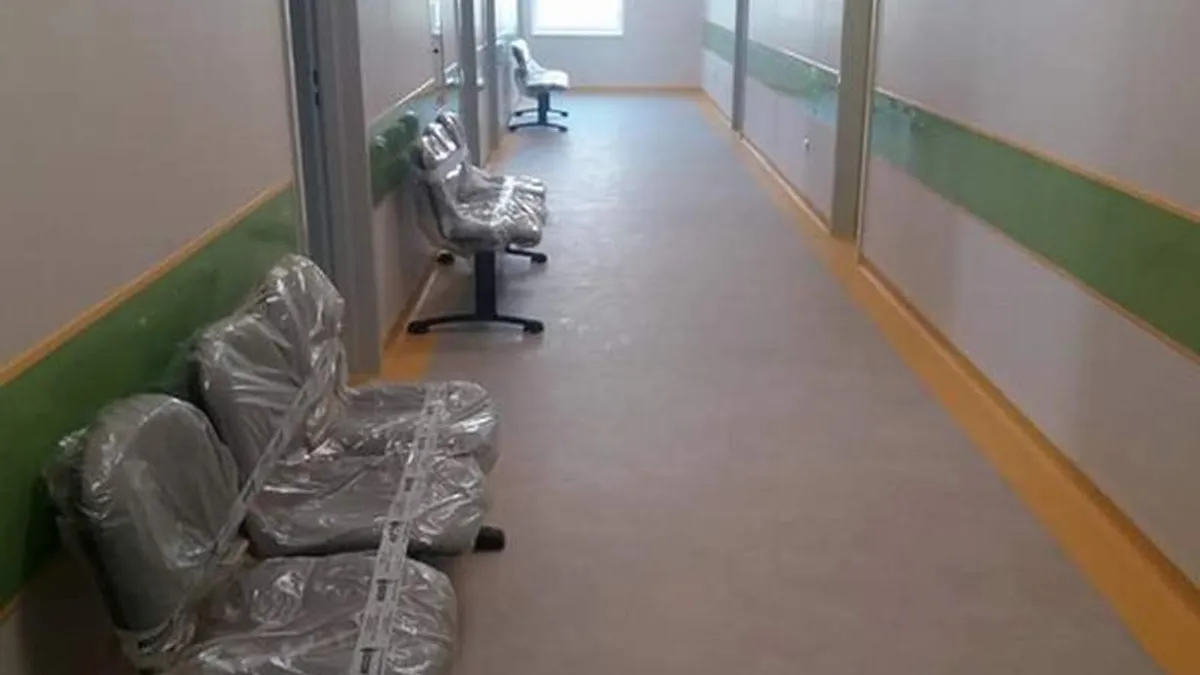 În unele dintre secţiile şi cabinetele spitalului, mobilierul (nou-nouţ) e neatins încă, iar aparatura medicală performantă, de cel mai înalt nivel, zace nefolosită. Şi se degradează sau se uzează moral.