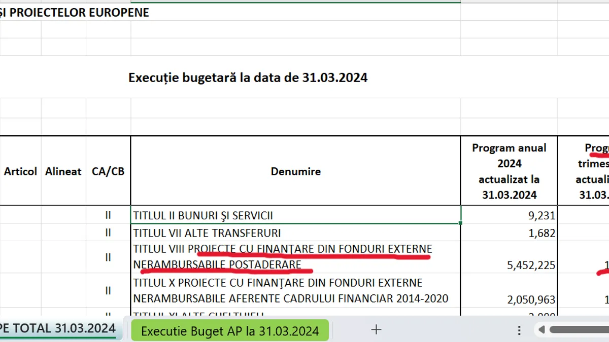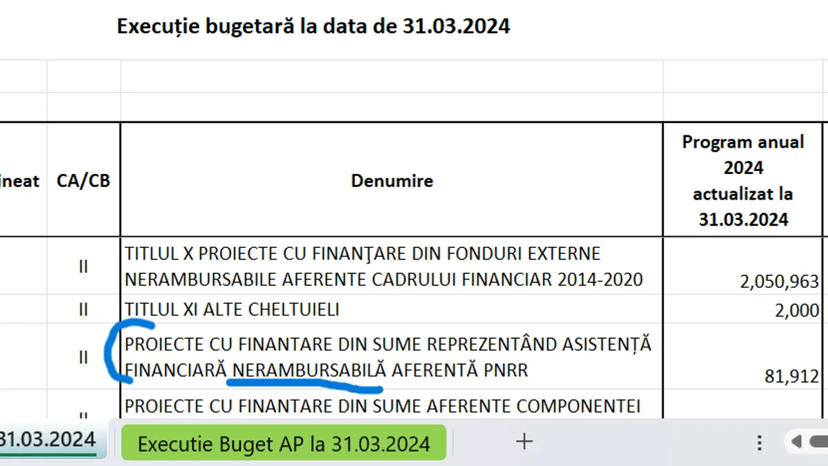 Potrivit datelor de pe site-ul MIPE, programul din primul trimestru al anului 2024 prevedea cheltuieli de 81,9 milioane de lei din fonduri PNRR neramburasbile, însă execuția consatată că nu s-a cheltuit nimic.