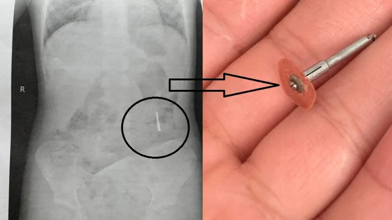 Îngrijorați, părinții l-au dus la Spitalul „Sf. Maria”, unde radiografia a arătat prezența unui obiect metalic de peste 2 centimetri.
