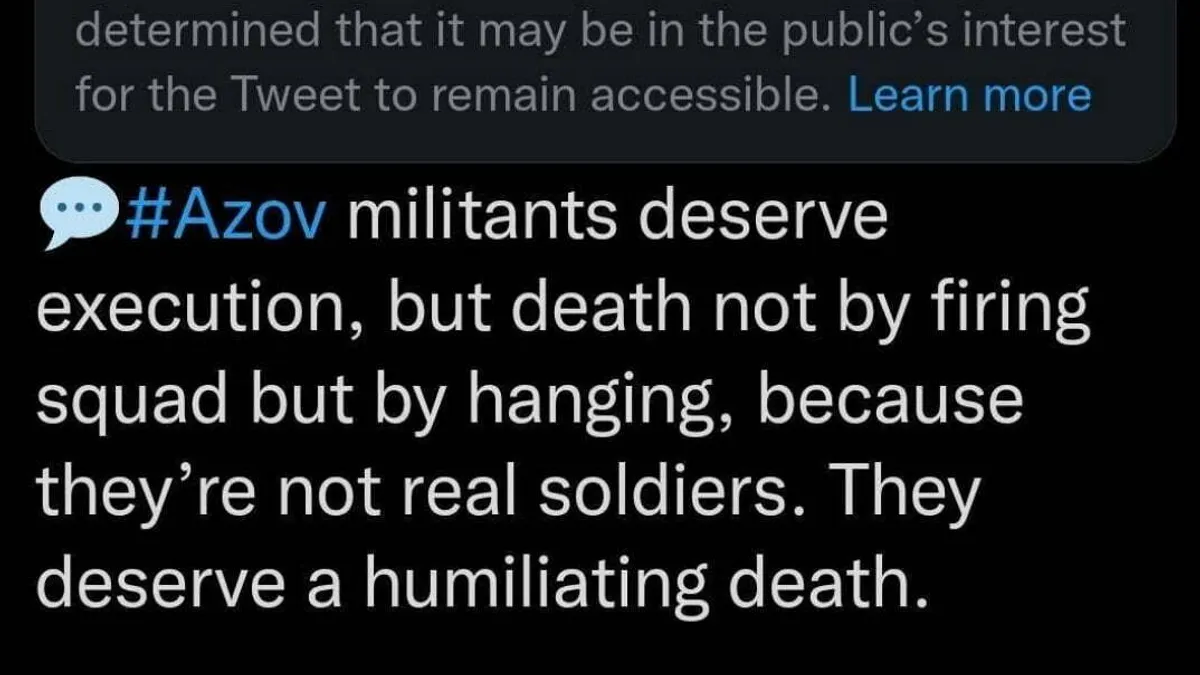 ?#Azov militants deserve execution, but death not by firing squad but by hanging, because they’re not real soldiers. They deserve a humiliating death.