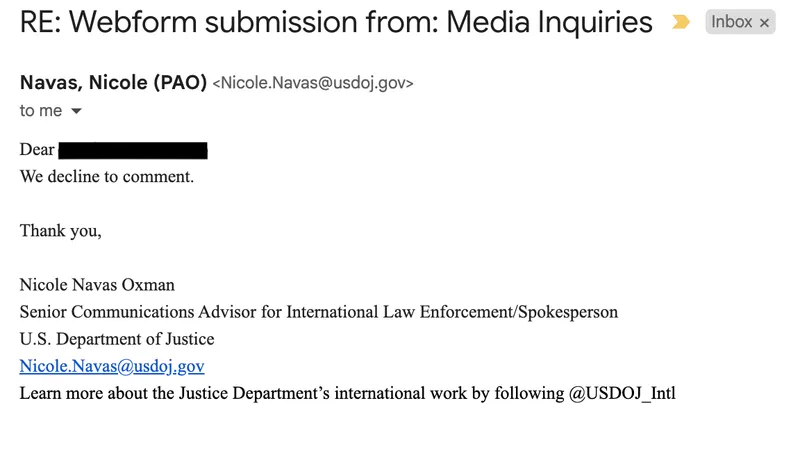 DOJ nu a lăsat loc de interpretări, răspunzând sec: "Refuzăm să comentăm."