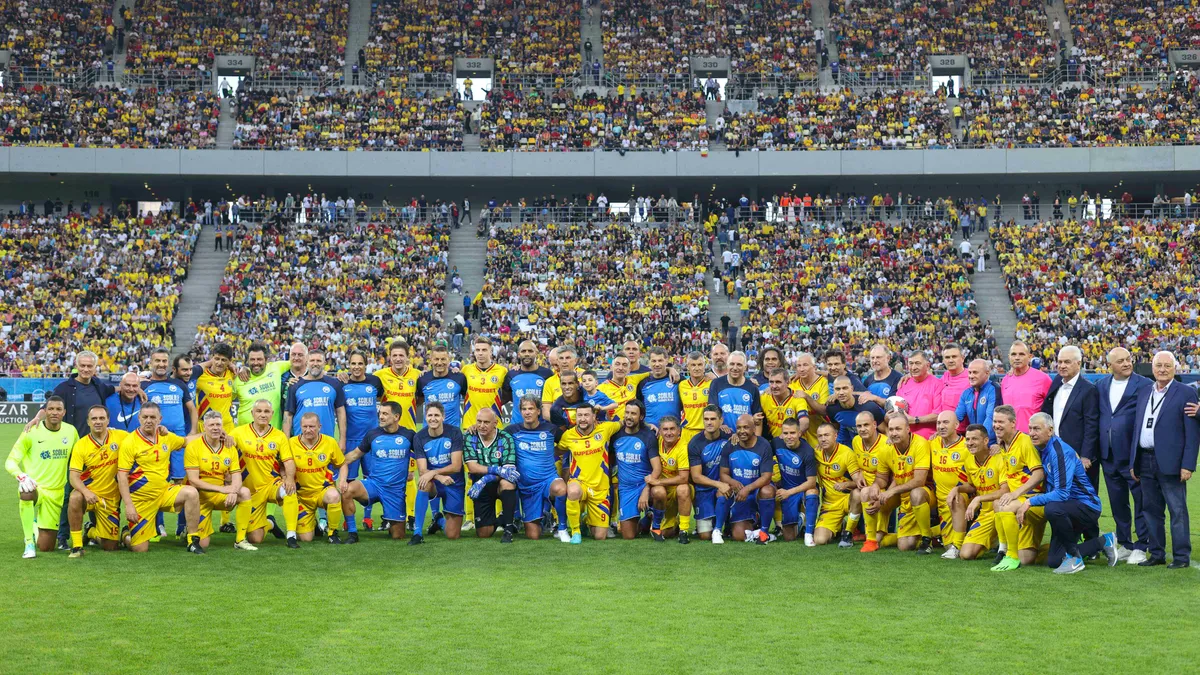 Echipa României a învins o selecţionată mondială cu scorul de 3-2 (1-2), sâmbătă seara, pe Arena Naţională din Capitală, la meciul de retragere al Generaţiei de Aur a fotbalului românesc. Acest meci a stabilit un record de asistenţă pe Arena Naţională, cu 54.967 spectatori.