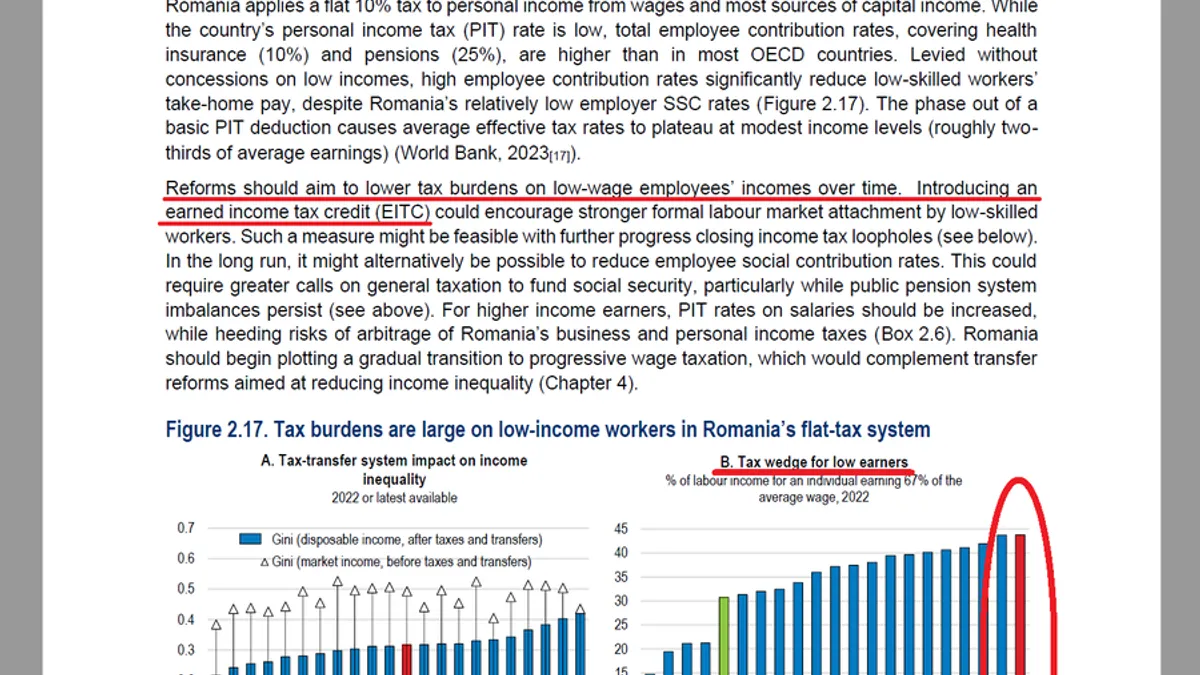 Acesta a arătat că în România taxarea muncii este de 43% dintr-un salariu complet, în timp ce media în OECD este de 35%.