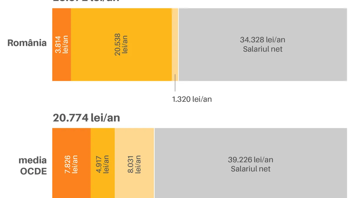 În timp ce în România, taxarea muncii este la 43% dintr-un salariu complet.