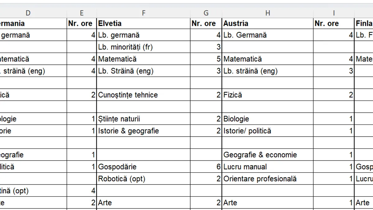 El a transmis și un tabel Excel în care face o comparație între numărul de ore din România și alte state europene.