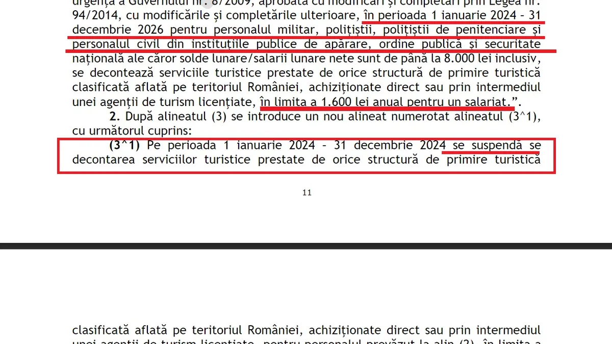 La alineatul 3 se menționează că, pe perioada 1 ianuarie 2024 – 31 decembrie 2024, toate instituțiile publice, cu excepția celor militare, suspendă acordarea voucherelor de vacanță.