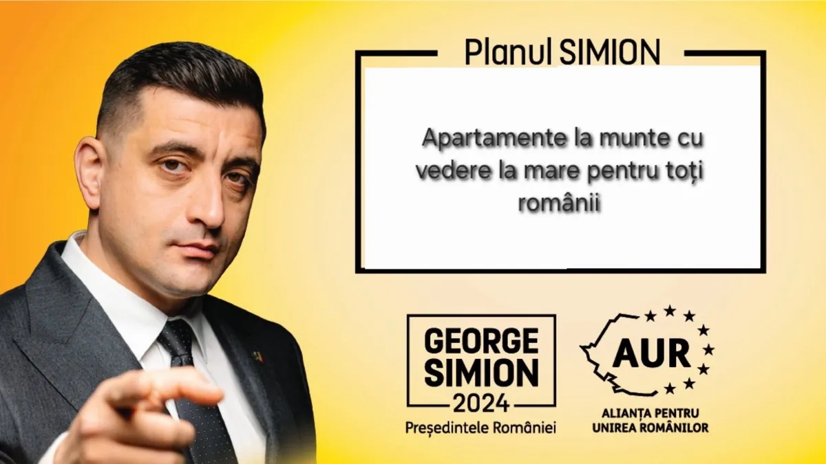 “Planul SIMION“ cu case de 35.000 de euro pentru toți românii a ajuns ciuca bătăii de joc pe rețelele sociale: în numele liderului AUR se promit case la munte cu vedere la mare, Netflix românesc, gratuit, sau panouri solare care merg noaptea.