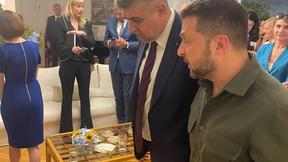 Acum câteva zile, premierul Ciolacu posta, pe Facebook, o poză în care se afla alături de președintele Zelenski, într-o încăpere în care se aflau alți lideri europeni participanți la o întâlnire regională, la Atena. La aceeași reuniune regională, președintele Moldovei, Maia Sandu, a avut o întâlnire bilaterală cu Zelenski.