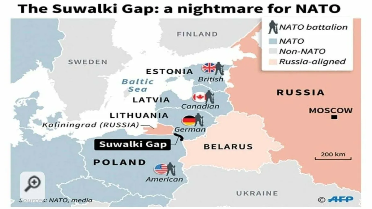 Current NATO contingents in the Baltics and Poland and the Suwalki Gap