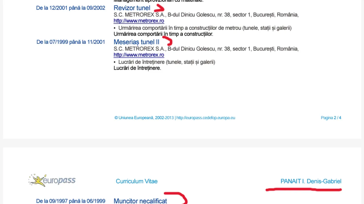 Șeful investițiilor de la Metrou, Denis Gabriel Panait, este un fost muncitor necalificat și „meseriaș tunel”, dar nepot de lider sindical. El a fost numit recent în funcția de „Director Strategie, Dezvoltare, Pregătire și Urmărire Proiecte Investiții”. Și soția sa, Genovica, lucrează la Metrorex.