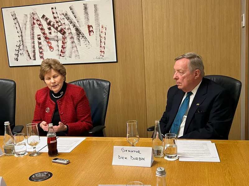 Jeanne Shaheen şi Dick Durbin, membri democraţi ai Senatului SUA, au încheiat marţi în România un turneu în Europa, care a mai cuprins participarea la Conferinţa de Securitate de la Munchen şi o vizită în Georgia. În România, unde s-au aflat pentru prima dată, ei au vizitat baza militară americană de la Mihail Kogălniceanu şi s-au întâlnit cu premierul Nicolae Ciucă.