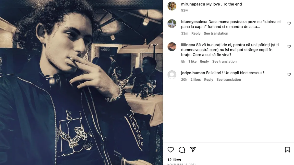 Mama tânărului drogat care a ucis alți doi tineri lovindu-i cu mașina la 2 Mai, poze pe Instagram cu fiul său în care acesta se uita în gol și fuma